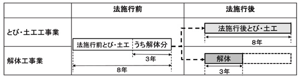 法施工前後のとび・土工工事及び解体工事の実務経験年数の取扱については